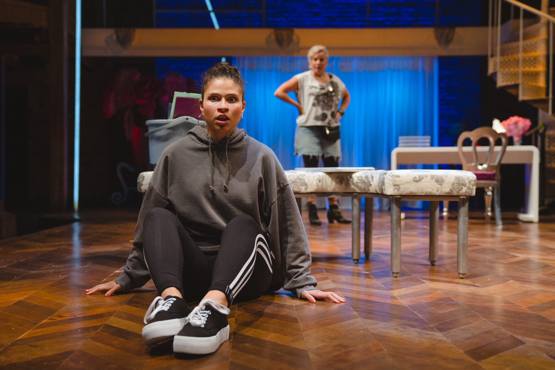 Among the supporting cast there are some great performances from James Clyde, as family friend Khalil, wont to pontificate ad nauseam much to everyone’s exhaustion, and from Salman Akhtar as the hapless Waqaas, firing up with anger at the prospect of losing his Mariam but essentially unable to fight his way out of a paper bag. And the whole show is held together by a star performance from Michelle Bonnard as Darina, keeping up lengthy conversations with the audience (even hoovering under their seats after the interval), taking the mickey out of her employer’s bromance, seeing right through Tartuffe’s pretence, and generally getting away with murder – but also looking after their interests, as is seen in the very last second of the play.