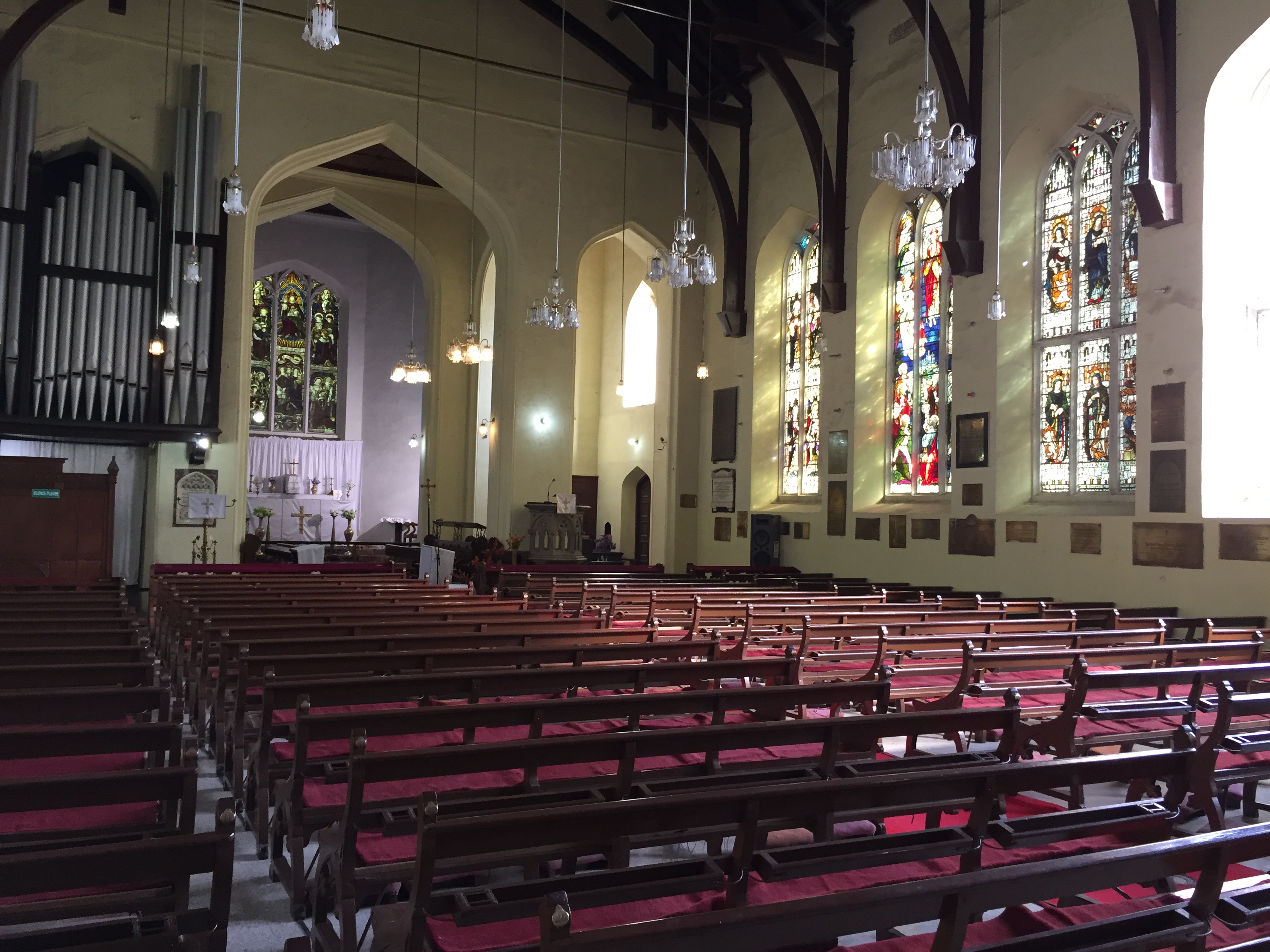 We were just too late to visit Christ Church (it closes for lunch) so we thought we’d take the same dining opportunity as the vicar. On Dinashkumar’s recommendation, we went to the Ashiana Restaurant in the centre of the town. It’s located in what was an old British Victorian bandstand. We sat in the outside garden, had superb food, friendly service and a much-needed Thunderbolt beer. On the other side of the street is The Ridge, which consists of a beautiful viewpoint, with a statue of Indira Gandhi, and it’s also the site of Christ Church, a neo-Gothic structure consecrated in 1857, with a chancel window designed by Rudyard Kipling’s father Lockwood. In a rather sweet cross-fertilisation of faiths, you have to take your shoes off to enter the church; I don’t know of any other Christian church where that’s a requirement.