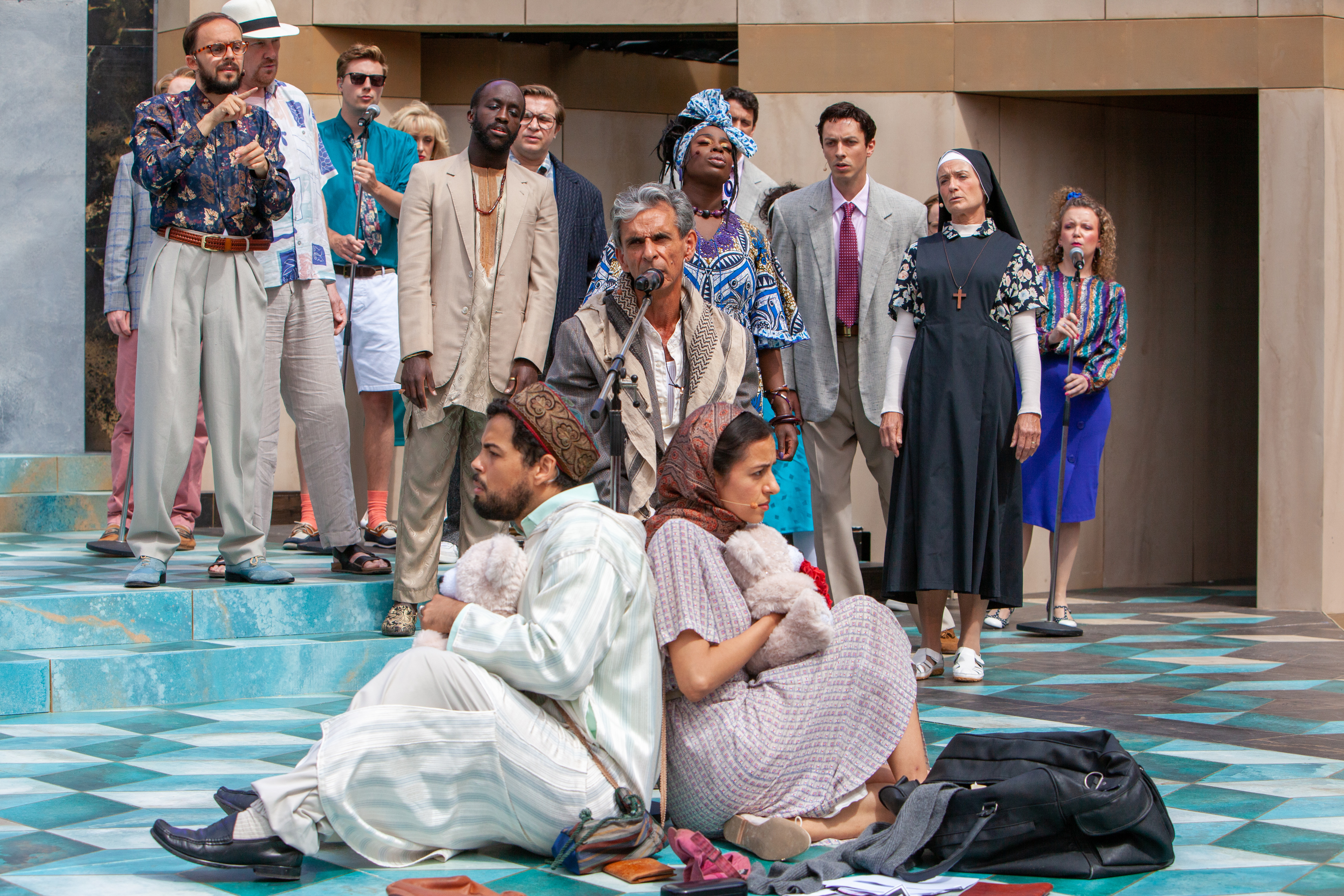 The RSC is to blame for my love of Comedy of Errors, having sat in the front row of the Aldwych Theatre in December 1977 agog at the magnificent production by Trevor Nunn, which remains the best production of a Shakespeare play I’ve ever seen (and – joy of joys – was recorded for posterity). The play adapts superbly to a summer outdoors setting – and the Lydia & Manfred Gorvy Theatre provides both extremely comfy seating and an extraordinarily clear view of the stage. You can be sure, by the way, that the RSC has adopted a strong Covid-secure protocol not only to look after its audience but also its cast and crew, with a longer than usual interval (vital to get visits to both the bar and the toilets done in ample time) and excellent attention to social distancing and hygiene requirements. The super-helpful and plentiful front of house staff did a tremendous job.