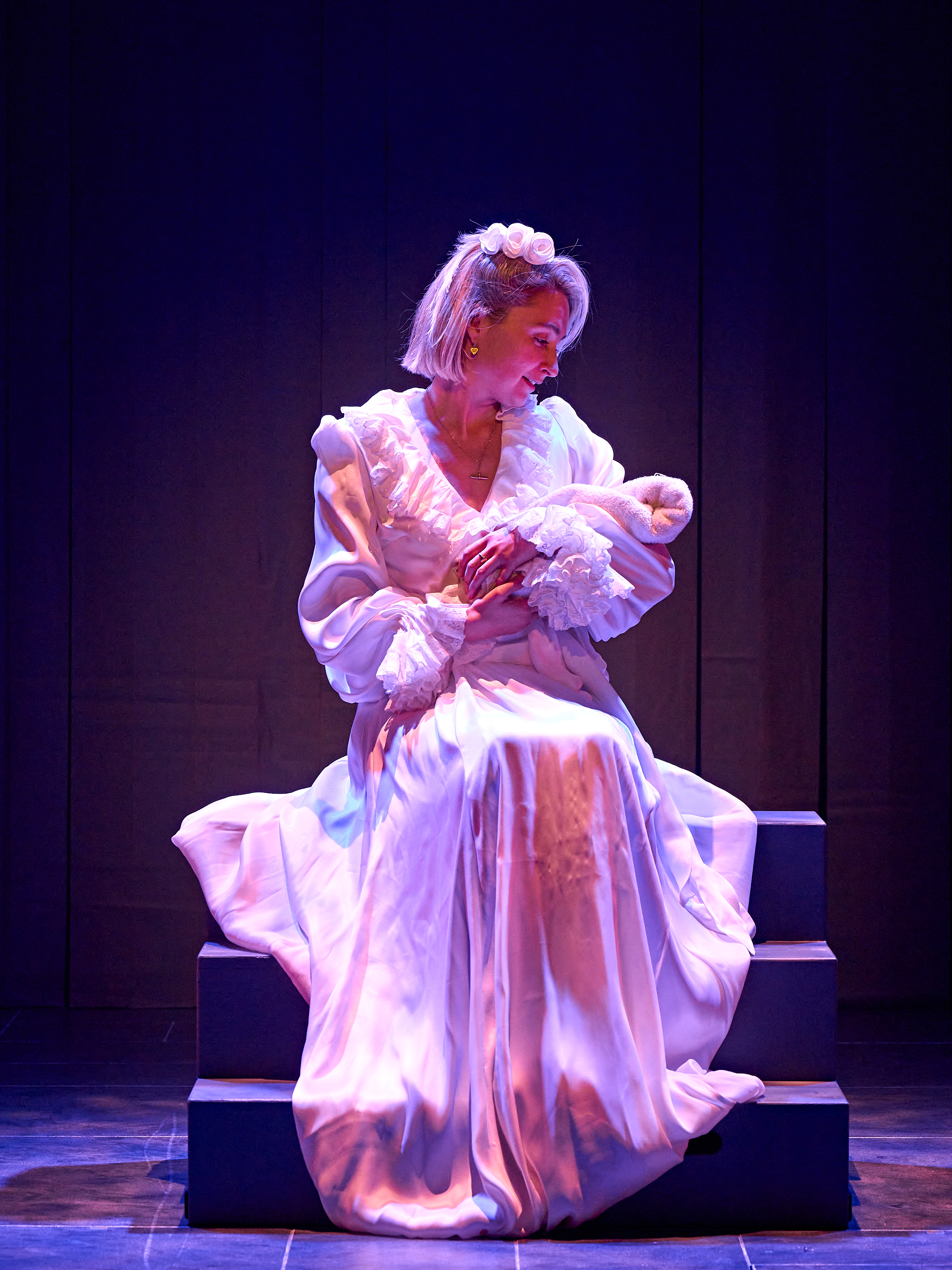 It was with a heavy heart that I realised this production had plugged in the RSC Binatone LED bedroom alarm clock circa 1981 at the sides of the stage, recalling how fatally the time theme wounded the 2018 production of Macbeth. Here it counts down from some time after 9pm to some time after 2 am, with To Be Or Not To Be delivered on the stroke of midnight. You couldn’t make it up. It was Mrs Chrisparkle who suggested that it might represent the time it took for the Titanic to sink. A shapely theory; but it’s impossible for the events of Hamlet to be crammed into four hours, no matter how speedily it’s delivered. Hamlet travels to England and back, and Laertes to France and back during the course of the play. Not even Ryanair can operate that quickly. The best thing about the clock is that it’s completely ignorable.