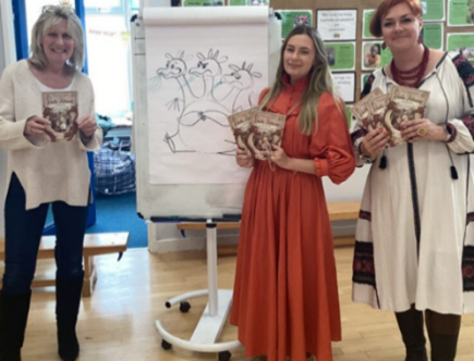 Author Claire Bramwell-Pearson, illustrator Alexandra Dikaia and Chair of the Friends of Oleksandriya, Zhenya Shkil