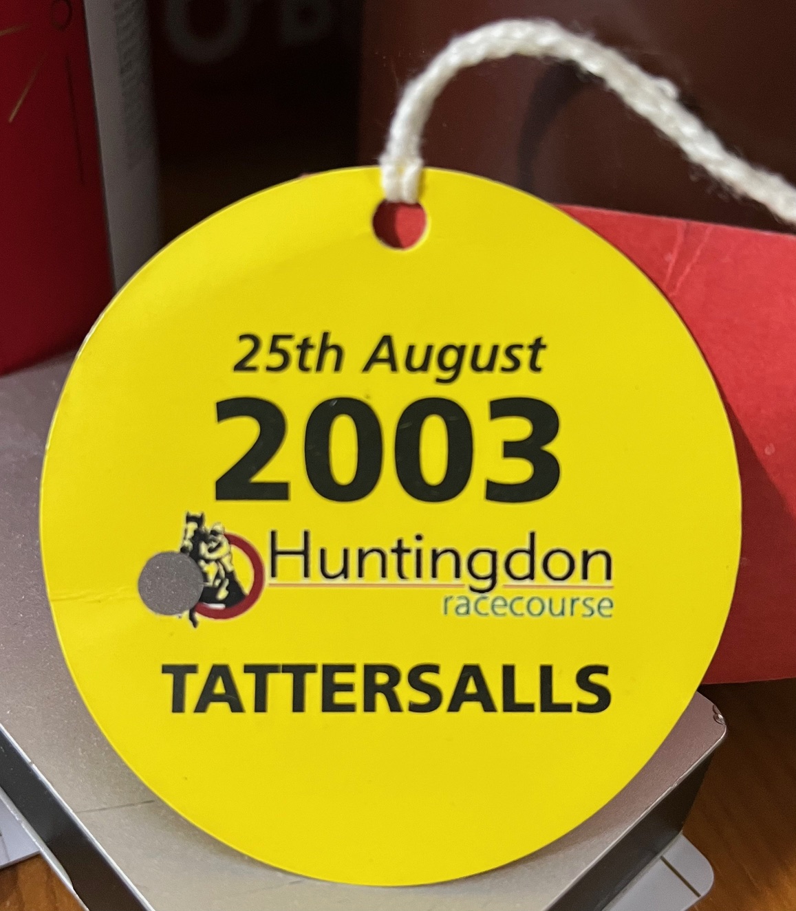 Every once in a while, it’s a real treat to spoil oneself to a day at the races. Last Tuesday, HRH the Crown Prince of Bedford and I were gifted a visit to Huntingdon Racecourse as guests of the Jockey Club. What can I say, it’s not what you know it’s who you know. It’s been 22 years since I last went to Huntingdon Races – I can prove that as I still have the tag on my binoculars.
