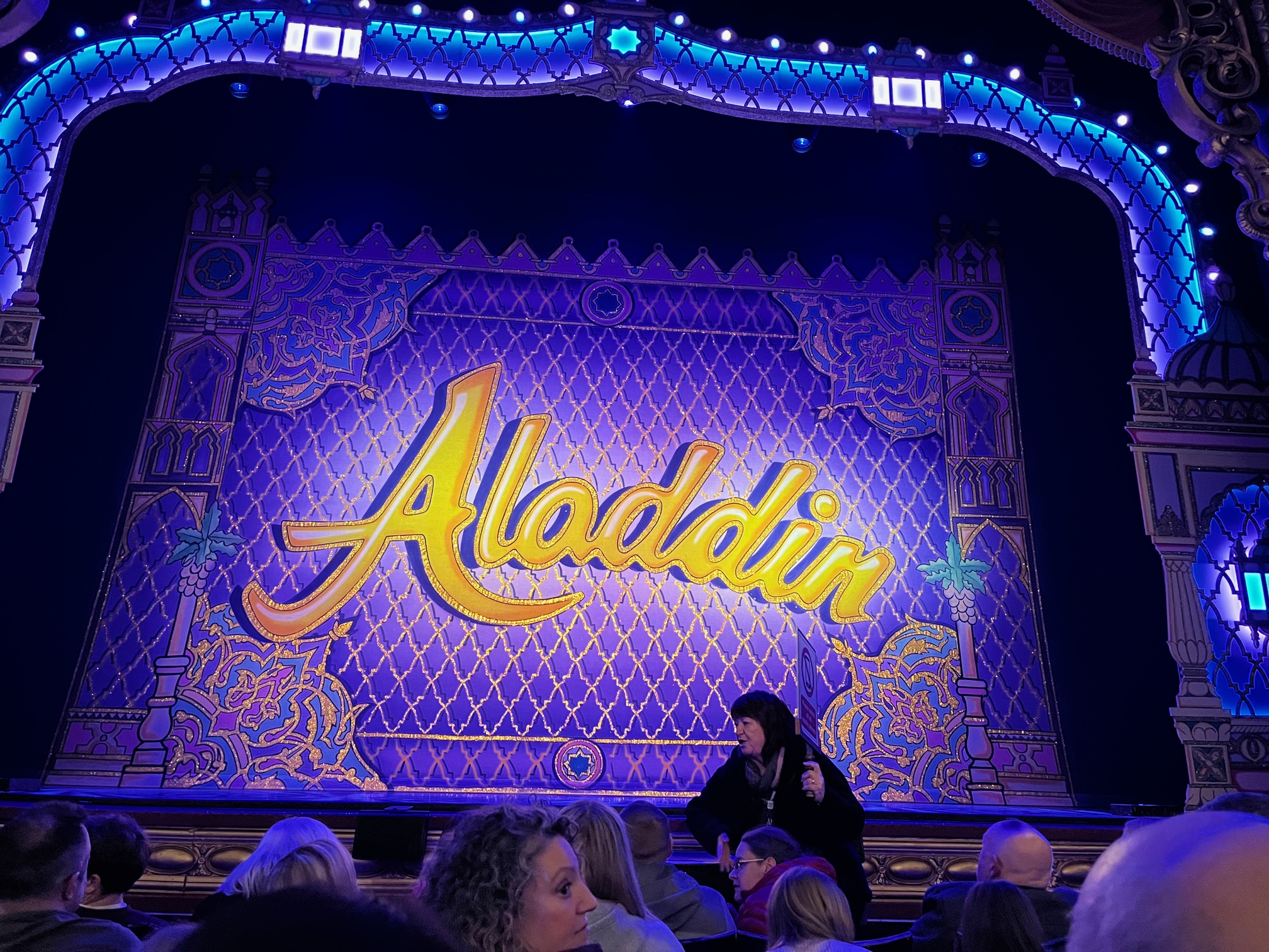 It’s no surprise that the recently widowed Dame Dolly is after a new boyfriend, and for our show it was third row Chris who was her lucky suitor. This year his duties were not restricted to his seat, and he sportingly joined the cast on stage for a bit of banter – always irresistible fun. There was some terrific stage magic with Aladdin’s flight on the magic carpet – from our position in Row E, with Aladdin performing aerial somersaults not that far from our heads, we couldn’t work out how it operated. And I’m happy about that – you don’t always want the magic spoiled! And of course, it isn’t the Lyceum Panto without the legendary Lyceum Panto bench, which this year featured a group of mummies (Egyptian, not scrummy) terrorising the decent citizens of the village until they flee at the sight of the Dame. Charming!