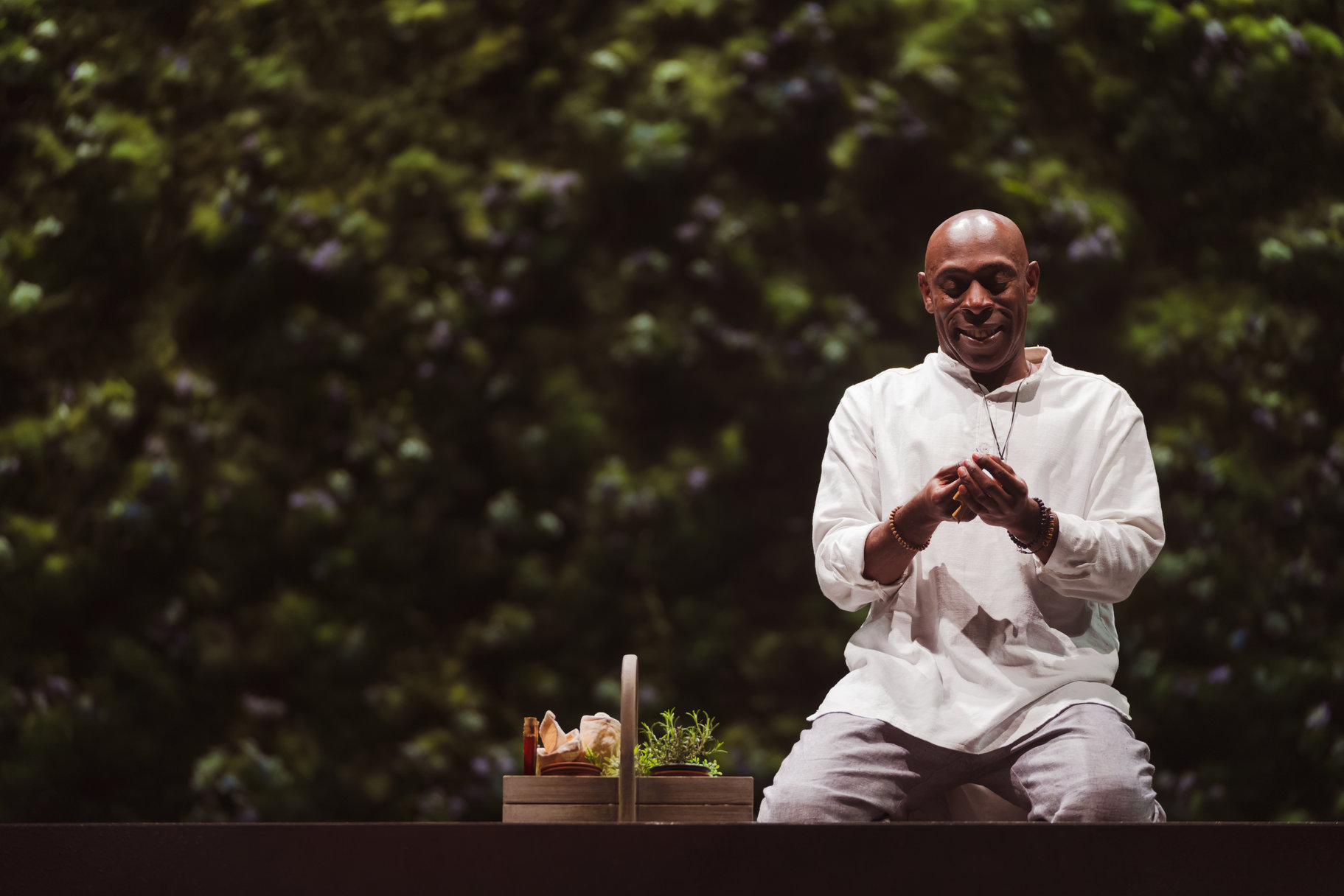 Another stand-out aspect of the production is its sheer honesty and credibility. There’s not one caricature nor over-the-top characterisation; every member of the cast delivers a truly believable performance, and every situation the production presents us is recognisable and makes complete sense, despite often appearing side-by-side with something theatrically magical. Some small examples: the priest is definitely the kind of person who would drink from an I Heart Jesus mug. This particular Olivia, when trying to impress Cesario on their first meeting, would definitely castigate themselves afterwards for their idiotic use of language – What is your parentage? What was I thinking!! Orsino’s court appears to be 100% staffed by gay men who dance together – it isn’t questioned, nor does it have to be. It just is. And it helps make sense of his initial attraction to Cesario.