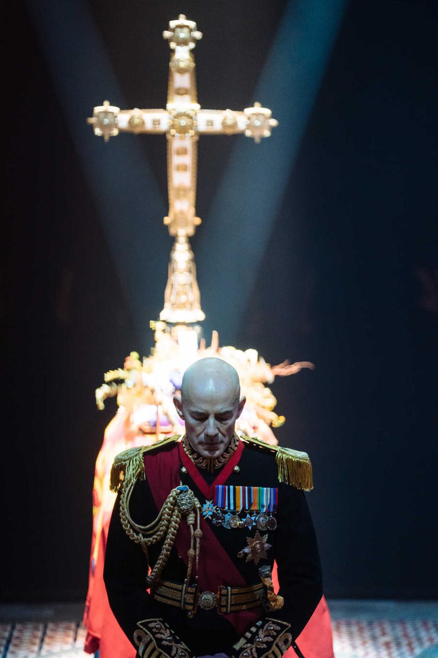 It’s not often you’re invited to be part of the procession around a royal coffin to pay your respects to the dear departed monarch (in this case, Edward I, fine old chap that he was). But it’s an unusual, inclusive and rather exciting way of getting the audience focussed on the power of the crown at the beginning of Daniel Raggett’s clear, pacy and gripping new production of Christopher Marlowe’s Edward II at the Swan Theatre.