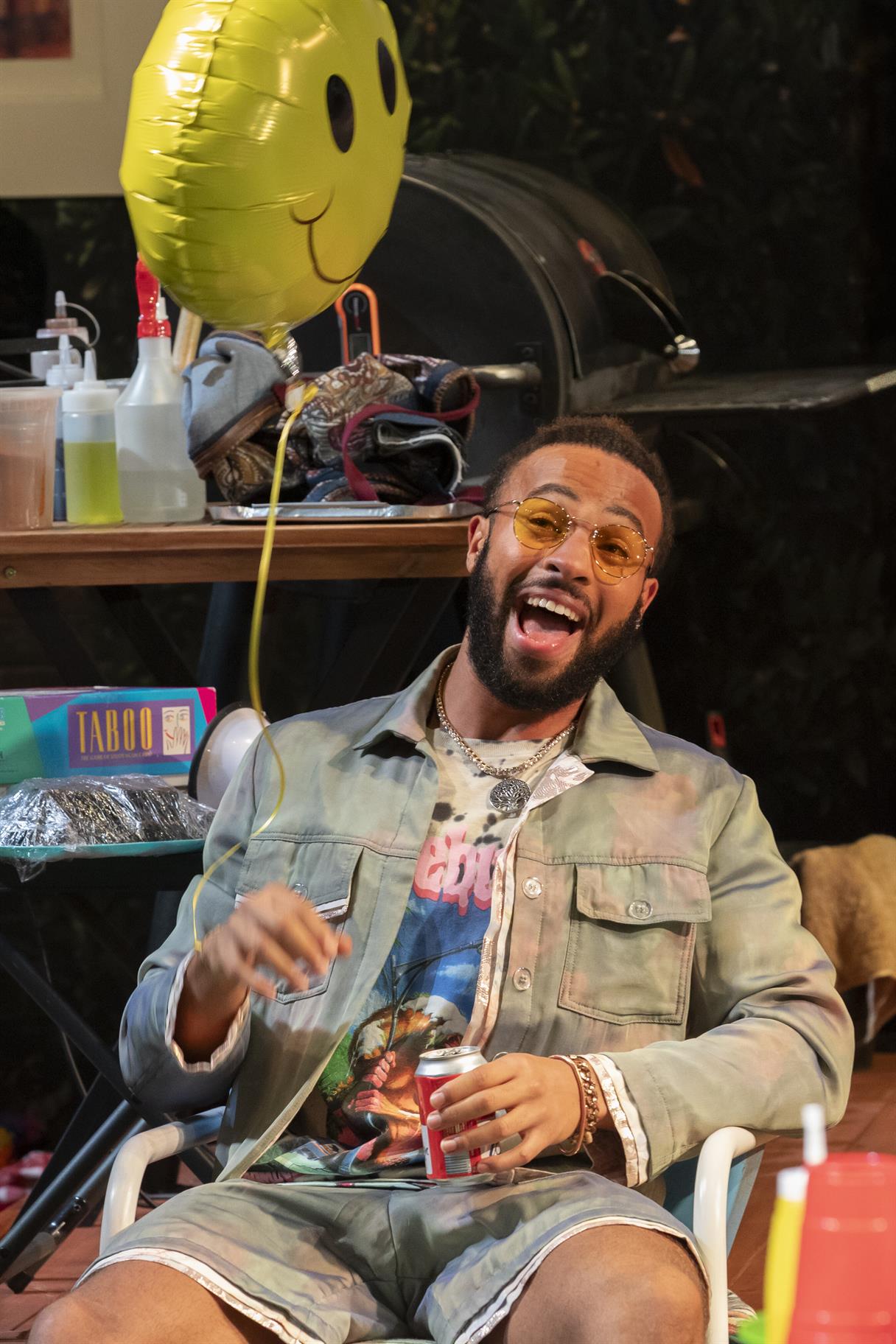 Maruti Evans’ set reveals a comfortable suburban back garden, all planned for a sunny barbecue party, with suggestions of the rooms of the house seen through the windows and patio doors; it’s all very Pleasant Valley Sunday. It undergoes a dramatic change at the end, which works perfectly for the finale – I’ll say no more. Dominique Fawn Hill has a great time creating eye-catching costumes for Andi Osho’s flighty Tedra and Sandra Marvin’s churchy Rabby, as well as Opal’s delightfully unsuitable dress, the immaculate military uniform for Corey Montague-Sholay’s Larry, and Sule Rimi’s classy white suit emitting a smoky aurora as the Ghost. Kieran Taylor-Ford’s Tio wears a relaxed party/beach outfit, and Olisa Odele’s Juicy – as Hamlet – wears the traditional mourning black, with just the occasional splash of colour.
