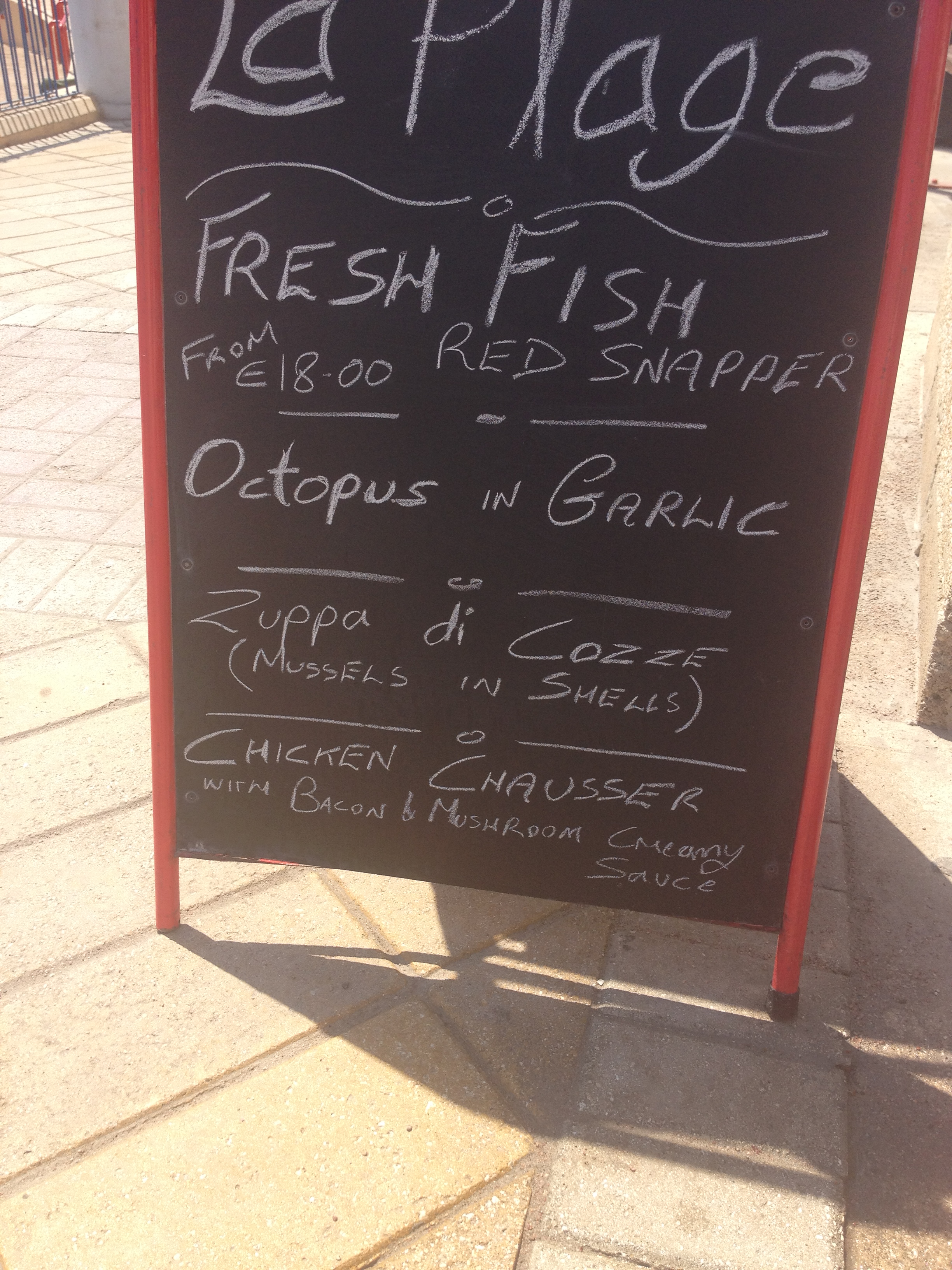 We got the last HOHO back to Mġarr, and on to our ferry with ease. The 25 minute crossing was fine, but that hour or more bus journey from Cirkewwa to St Julian’s was utterly knackering. We got off at our hotel totally exhausted. Trouble was, we were also quite peckish. So the afternoon nap got demoted to a fifteen minute sit-down on the balcony and then we were off again, foraging for food. We ended up at Café 516, where Mrs C sampled their gluten-free pasta in the form of a Spaghetti Carbonara. I had a Capricciosa Pizza. It was all very nice. To accompany, a bottle of very acceptable La Torre Chardonnay, and we finished off with gluten-free Snickers cake too. Mrs C was in coeliac heaven.