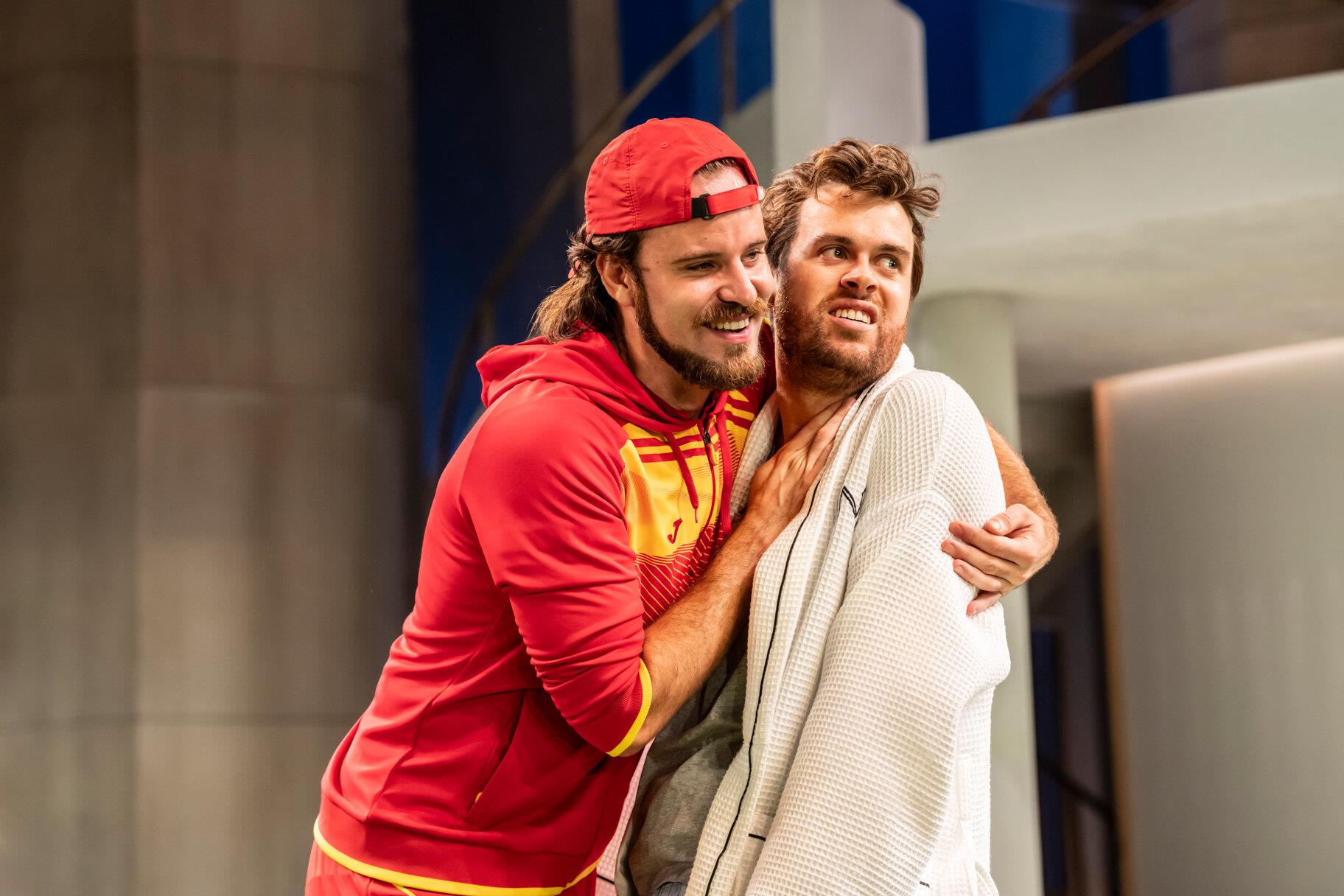The Court of Navarre has been transplanted to a billionaire’s wellness centre on a paradise island in the Pacific in Emily Burns’ new production of Love’s Labour’s Lost, a Shakespeare comedy that stands out from the others by refusing to end with a multiple wedding celebration, but instead suspending such festivities in abeyance for a twelvemonth and a day. I confess that LLL is one of my personal favourites of Shakespeare, because of its unexpected, bitter ending, its deflation of the tradition of courtly love and how it exposes hypocrisy in general; and this production covers all those areas in a funny and arresting manner.