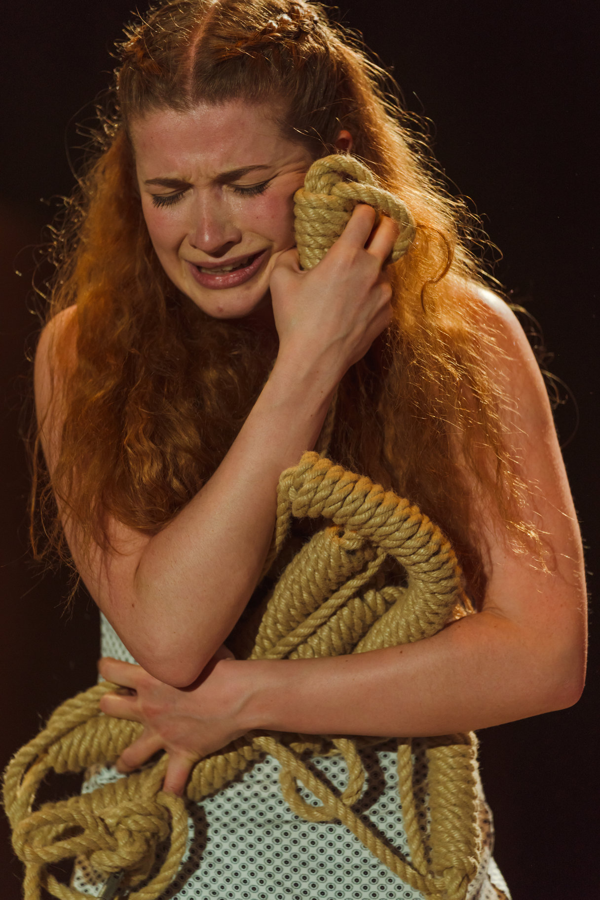 And he’s matched by a sensational Juliet in the form of Karen Fishwick; if you think Juliets should be all pure and demure, think again. Ms Fishwick plays her as a spirited wild child, full of adventure, a giggling provocatrice who can’t wait to start living and loving – provided it’s with the man she chooses. When her domineering father sets her up with Paris – to be wed a few days after her cousin Tybalt has been killed (and awkwardly having already married his murderer) – you won’t believe the fit of fury that overtakes Juliet, pounding the cushions with flailing fists, shrieking her refusal to comply. You can see where she gets this hot-headedness from; her father Lord Capulet disciplines her with a substantial roughing-up that takes you by uncomfortable surprise – a very good physical performance there by Michael Hodgson.