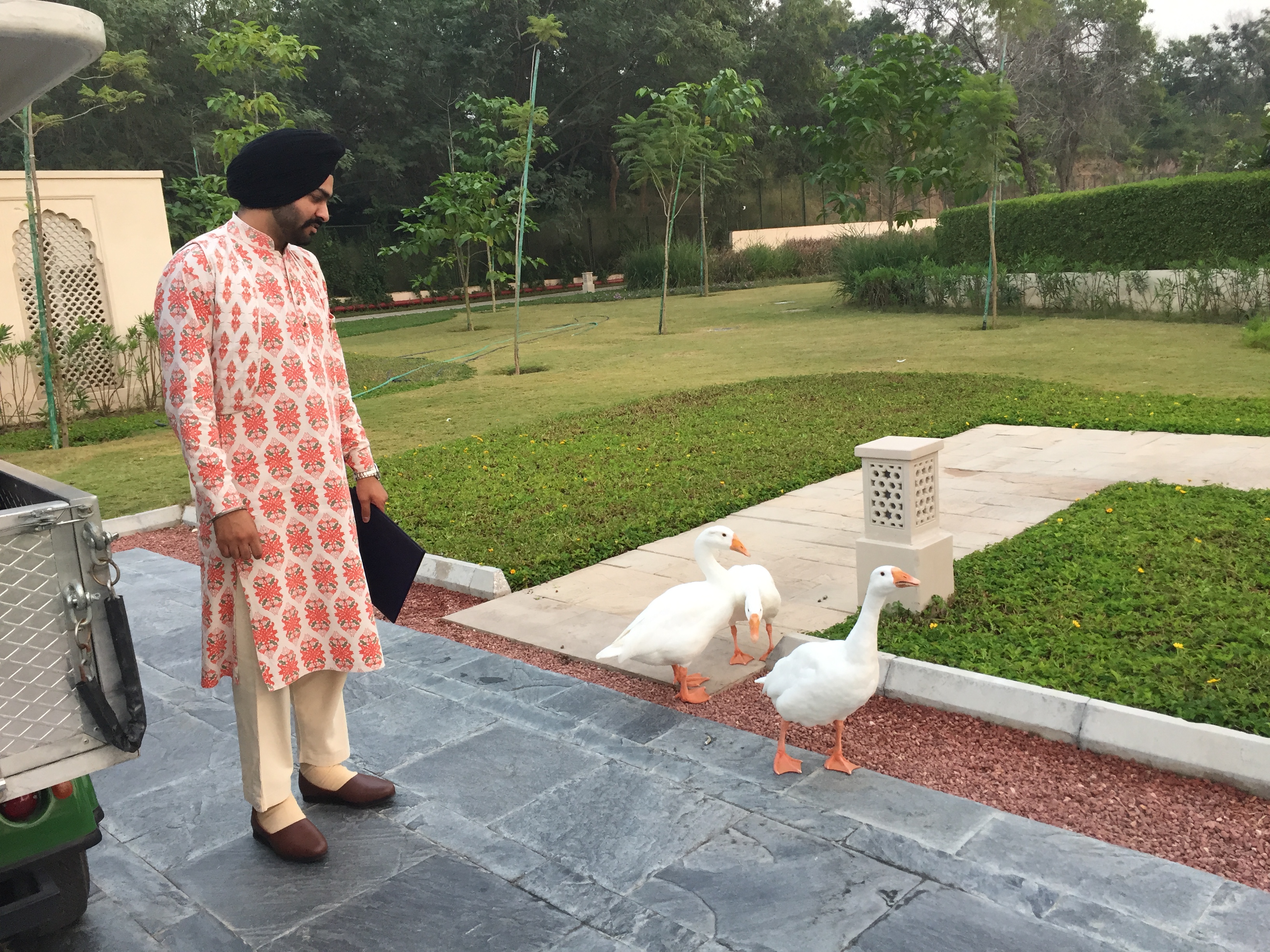 But first – check in to the Oberoi in Jaipur. We stayed here in 2006 and it’s still a lovely hotel, although, to be super-critical, there are just one or two areas where it’s beginning to show its age. That’s inevitable, of course; the Oberoi in Delhi was closed at the time while it received a facelift to bring it back to the immaculate condition we’ve enjoyed there before. Maybe it’s time for the same to happen to the Rajvilas. We stayed in a Premier Room, with its amazing bath that appears to be open to the garden; we remembered from last time there’s