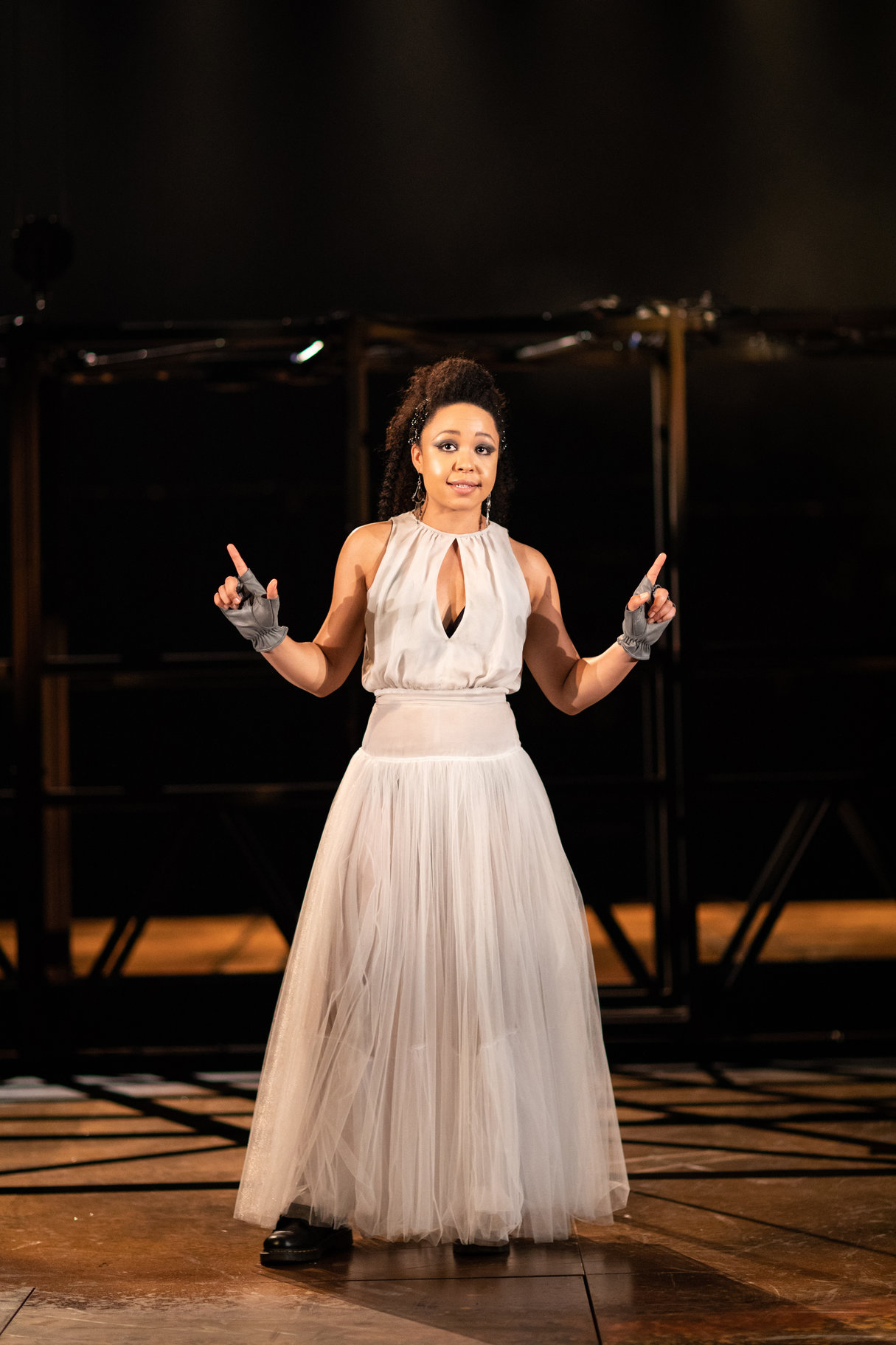 Ann Louise Ross does a great job of conveying Agatha’s fighting spirit and her love of her son with her complete fury at his lies and his folly. There are a few other featured roles, but the nature of the play is that the rest of the cast form an ensemble that populate Gynt’s life and times whether it be in Dunoon, North Africa or somewhere lurking in the Hall of the Mountain King. Tamsin Carroll is both bewitching and alarming as the Woman in Green and Anitra, Jonathan Coy gives great bluster as Bertram and alarming sincerity as Begriffenfeldt, Anya Chalotra plays Sabine with a terrific blend of feistiness and calm resignation, and Oliver Ford Davies is perfect casting as the authoritative but reasonable Button Moulder. Amongst the minor roles Lorne MacFadyen as Duncan, Ezra Faroque Khan as the Captain and Guy Henry as Ballon and the Weird Passenger give great support. But everyone throws their heart and soul into creating a very impressive theatrical experience.
