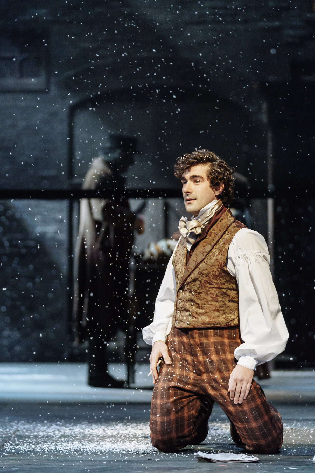 The second half of this brilliant double-bill is Celebration, first performed in 2000 and the last original play that Pinter wrote. This time we’re in an extremely expensive restaurant where Lambert and Julie are celebrating their wedding anniversary in the company of Matt and Prue (who happen to be Lambert’s brother and Julie’s sister). Financially, they’ve obviously done very well for themselves – well enough for their loud and uncouth behaviour not to cause a problem with the Maitre D’ or the restaurant owner. Russell and Suki are also dining; she once had a fling with Lambert, and when he notices her in the restaurant they all decide to sit together. However, for the purposes of this production,rather like Party Time, they’re already sitting together on one long table and it’s only the lighting flashing on and off over different heads that tells you whose table we’re eavesdropping on. As before, this increases a sense of style and artifice; but unlike Party Time, where you had a feeling of isolation, here you feel that people have been forced together – perhaps under duress. Will sparks fly? Or will everything be nicely controlled by the restaurant staff?