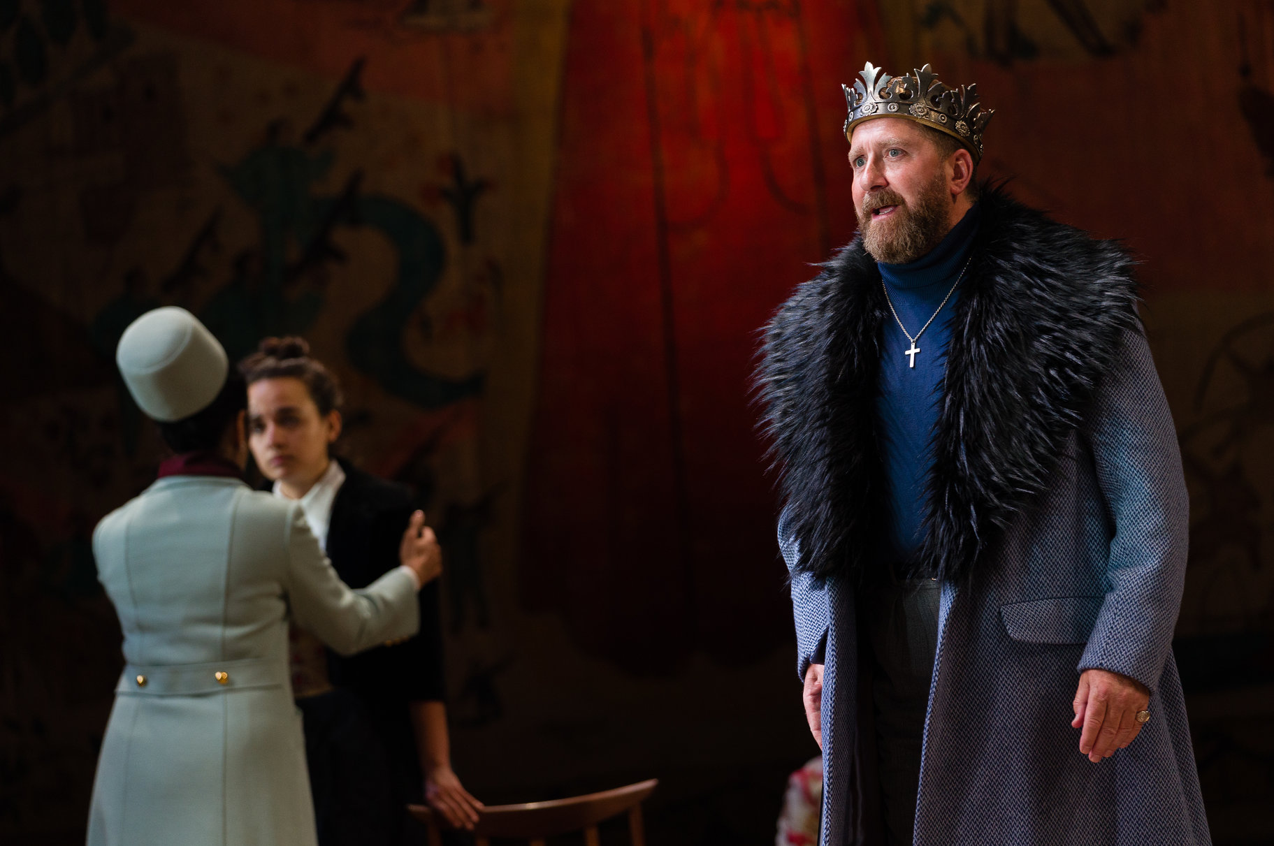 It struck me that Shakespeare doesn’t give the actor playing Bertram many memorable juicy lines to establish his full character, but Benjamin Westerby makes a good job of portraying his young callousness and poor decision-making. Bruce Alexander is very good as the King of France, all wheezy and feeble at first, then properly regal later; he comes into his own in the final scene where he adjudicates in the Bertram/Helena/Diana love triangle, with beautifully timed vocal tics and challenging expressions.