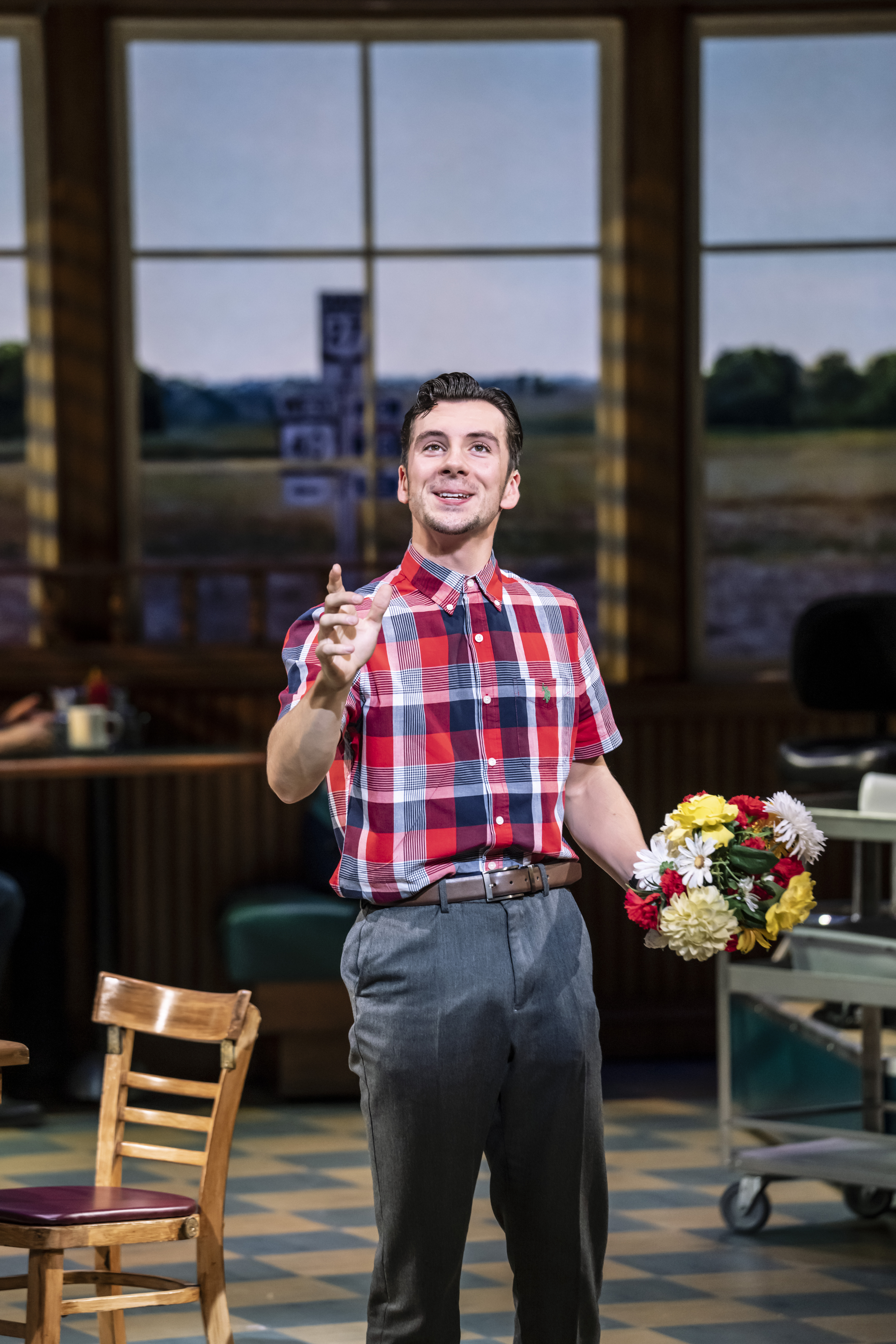 Alex Young (brilliant in both last year’s Anything Goes and the touring High Society a few years ago gives another chirpy and cute performance as Ellie, the rising star, and she is matched by the brilliant Danny Collins, a fantastic dancer whose performances we have enjoyed both as part of Matthew Bourne’s Sleeping Beauty company and Drew McOnie’s Drunk, here giving us his full stagey showdance routines. Allan Corduner is a bluff and avuncular Captain Andy, and Lucy Briers perfect as the grim and grumpy Parthy, seriously channelling what Captain Andy calls her “mean disposition”. We saw her recently equally grim and grumpy in the Young Chekhov season at Chichester, and before that in the Royal and Derngate’s Ayckbourn season back in 2009. I’d love to see her play a cheerful role for a change! I also really enjoyed the performances of Rebecca Trehearn as Julie and Bob Harms as Steve (and many other characters) – Mr Harms is getting to be a bit of a regular in Sheffield, and that can only be A Good Thing. I’m not going to mention everyone, but the entire cast get behind the show with such attack and talent that the show whizzes past in the blink of an eye.