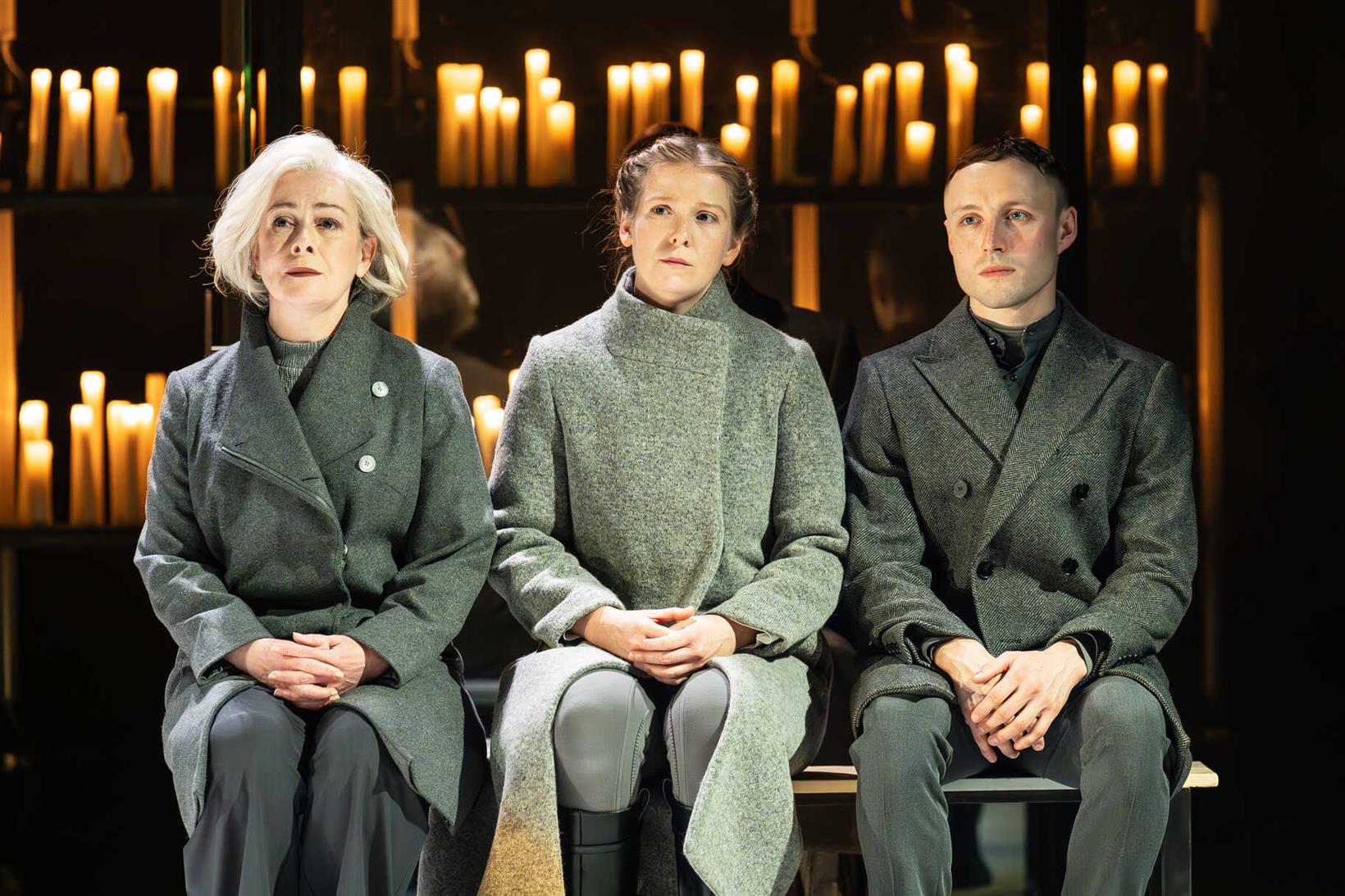 The big question to ask of any production of Titus Andronicus is, just how gruesome do you want it to be? And I think the consensus is to be as bloody as you dare. Max Webster’s production is a surprisingly successful combination of high on blood but low on violence, in that most of the murders are committed in a very stylised manner, with a distanced swish of a knife and a flash of dramatic lighting that nevertheless causes the blood to flow. It’s also high on sinister too; whenever the pulley system on stage starts working, and a noose or a hook comes into view, you know there’s only going to be one outcome. As the death count increases, the styling becomes more intricate but more desperate; towards the end we’re reduced to sloshing from a bucket and using a couple of hosepipes.