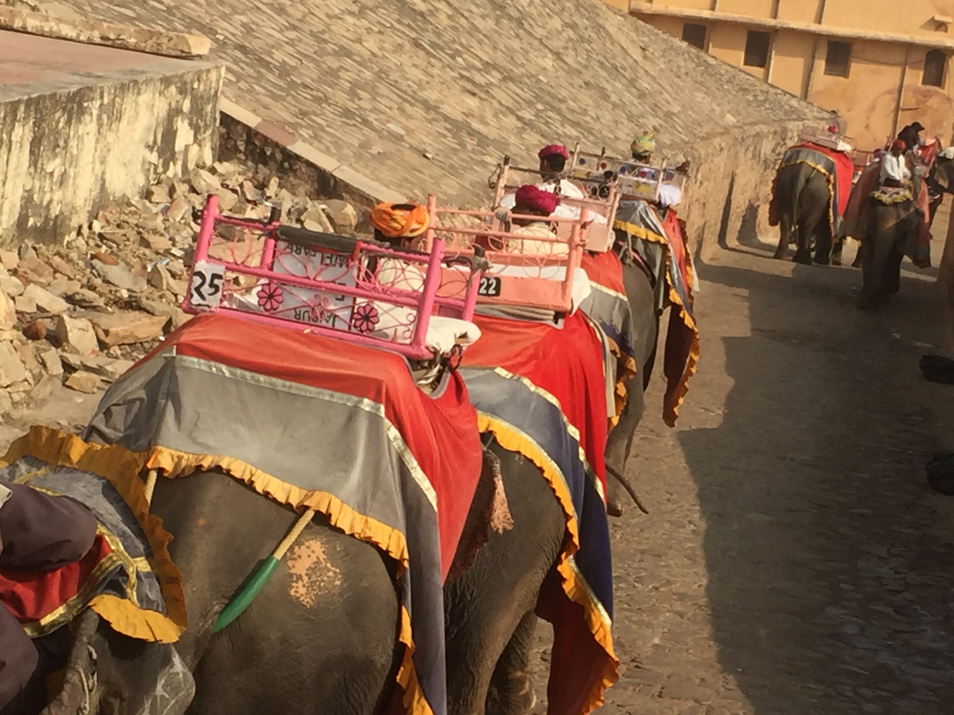 Jaipur is very famous for its jewellery, and it is almost compulsory to take time to visit a factory shop. When Professor and Mrs Plum came in 2015, we witnessed her purchasing a beautiful ruby ring, with which she is still very pleased. Mrs C is surprisingly uninterested in expensive jewellery (phew!) but nevertheless you never know when you’re going to see Absolutely The Perfect Item That You Cannot Refuse. So we trooped around this factory, and were treated to a description of the process that takes a rough gem and makes it into a beautiful item of jewellery. Interesting terminology; the man described one process as taking the unfinished item and giving it a “blow job”. I think he meant cooling it down. But I’m not entirely sure.
