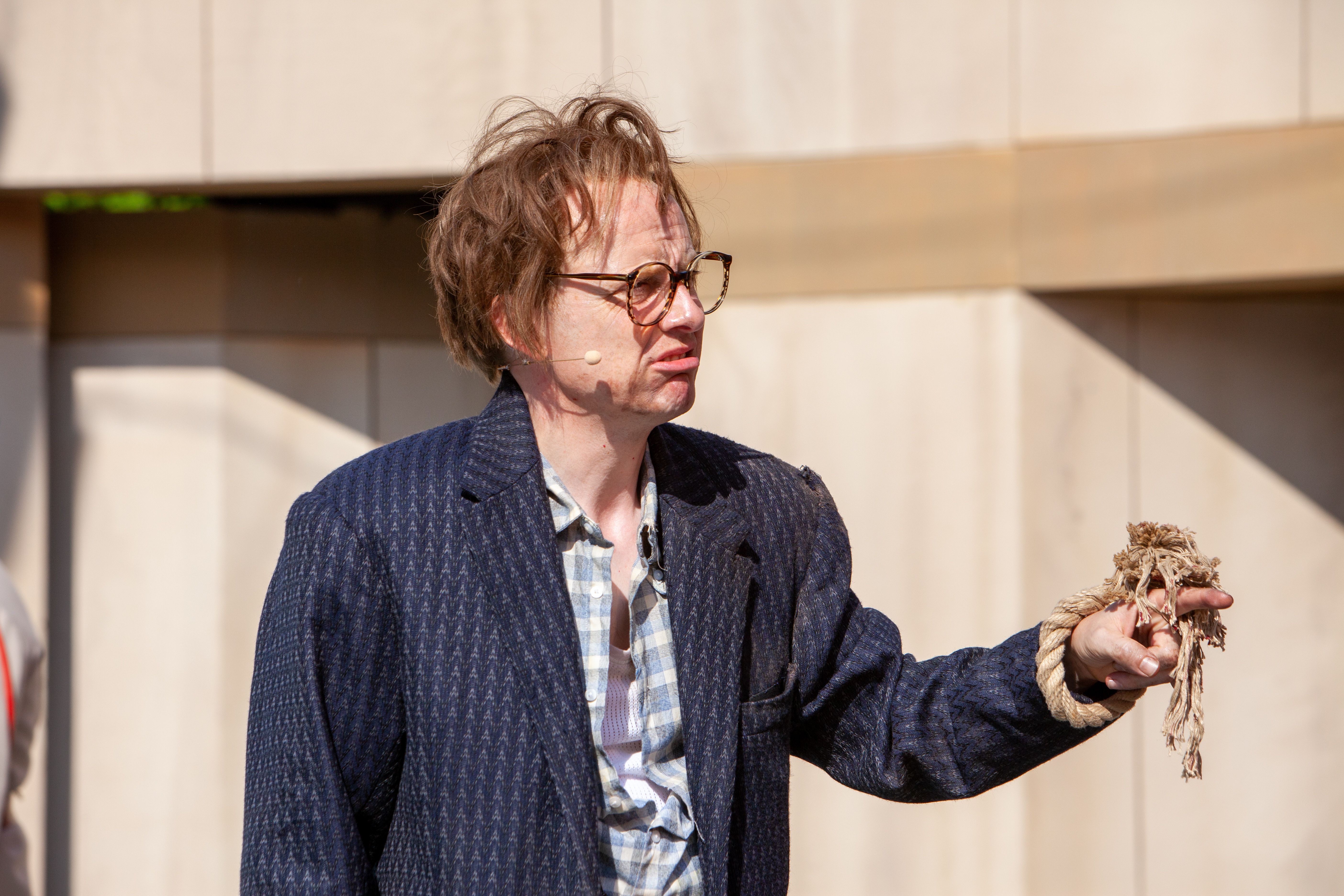 In the main roles, Rhys Stephenson is perfectly cast in his professional stage debut as the charismatic Michael; he has terrific stage presence, always gaining the audience’s confidence and approval, and, boy, does he know how to wear a suit – great work again from Simon Kenny’s costume design. Mark Arends excels in the difficult task of portraying Bernard, who develops from emotional weakling to tyrannical husband with total credibility. One could easily see how he could be played as a pantomime villain, but this is a very intelligent portrayal of a self-centred, emotionally blighted individual, to whom racism comes naturally and for whom arrogant reputation is equally important.